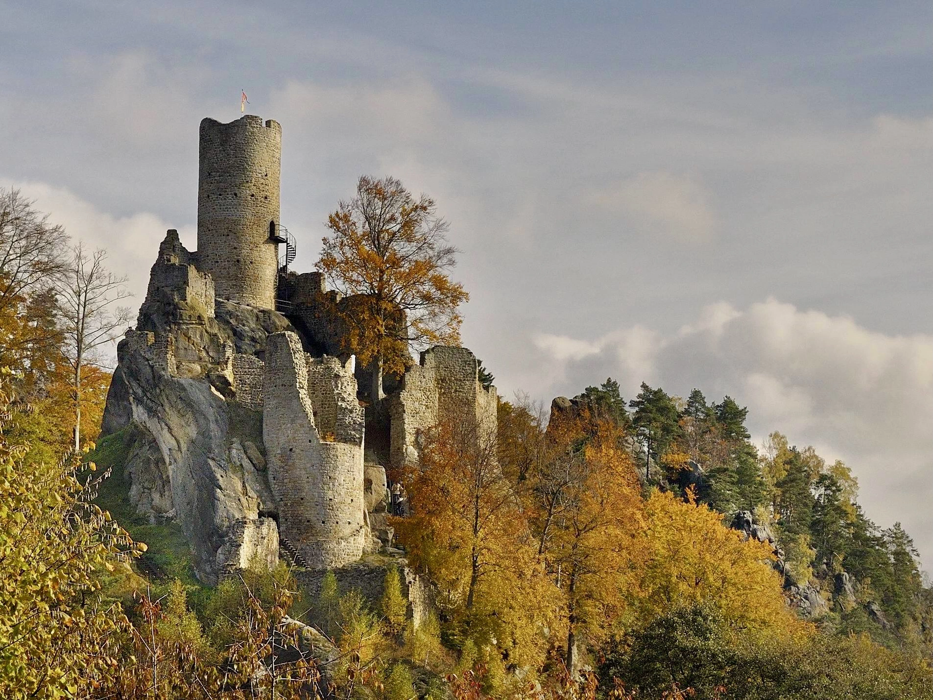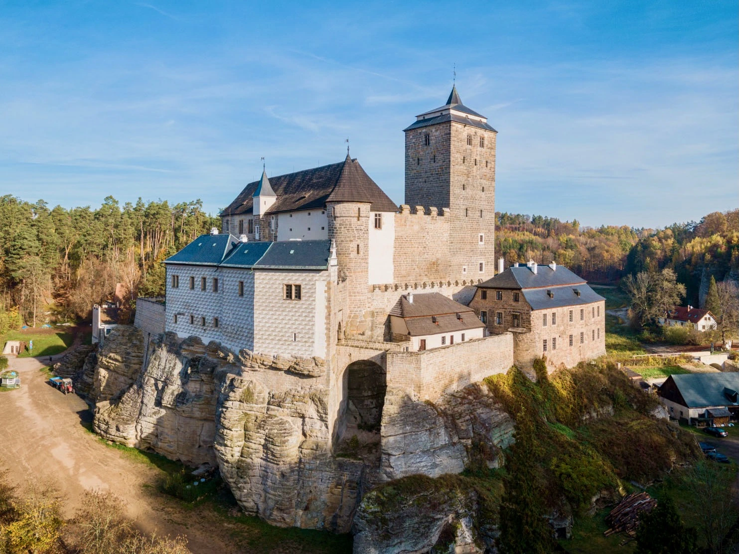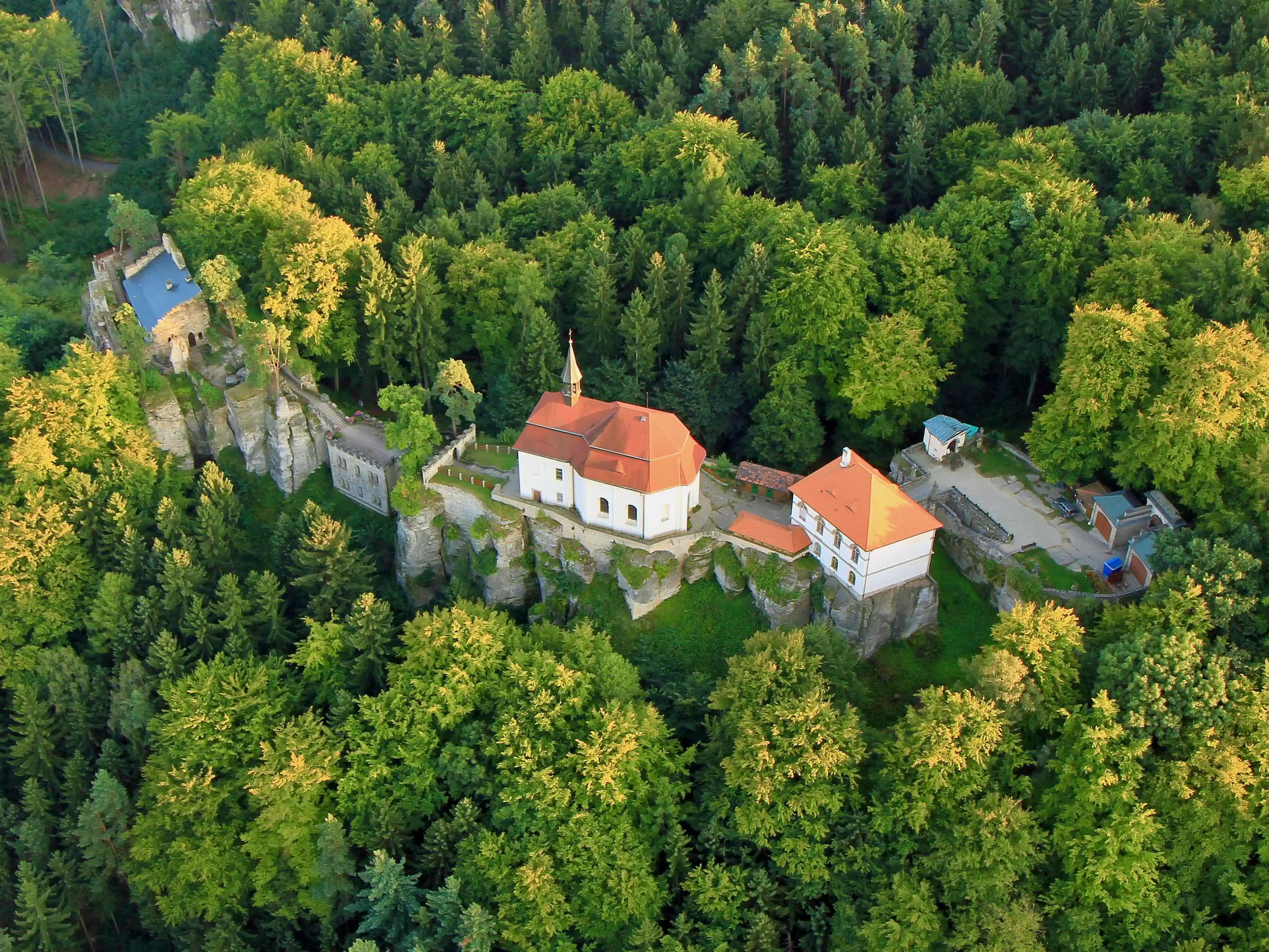 A rock castle founded in the early 15th century, deserted in the 16th century. The castle complex adapted in the 19th century into a Romantic Pantheon. In front of the castle a summer residence in the form of a chapel built in 1826. Probably the biggest and the most complicated rock castle in the Czech Republic.